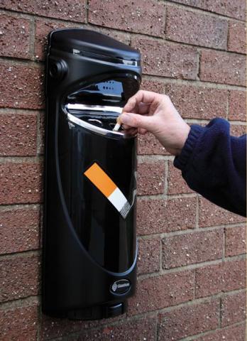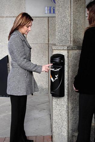El cenicero de pared para exteriores cuenta con el sistema SmokeGuard™, un dispositivo novedoso que sirve para el control del humo. El mismo permite que la mayor parte del humo generado por las colillas prendidas, permanezca dentro de la unidad.