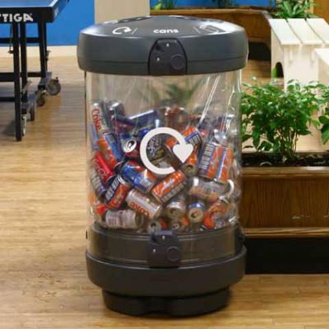 El cesto transparente para reciclaje C-Thru™ es único en su tipo, ya que posee un cuerpo completamente transparente que permite la vista de su contenido. Con un volúmen de 180 litros, es ideal su instalación en áreas comunes y zonas con alto caudal de gente. Sus características generan un gran impacto en el público, ya que el cuerpo transparente promueve la conciencia colectiva de reciclado de los mismos.