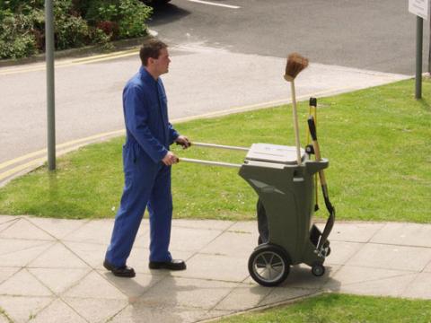 El carro de limpieza Skipper™ es ideal para su uso en labores de barrido y limpieza. Cómodo de usar, permite una fácil maniobra en lugares de difícil acceso o de alta circulación peatonal y vehicular. El carro ha sido diseñado para ser utilizado tanto en interiores como en exteriores. Es extremadamente fácil de maniobrar, incluso subiendo y bajando escalones y cordones.