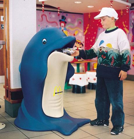 Splash™ es un llamativo cesto para residuos con encanto que estimulará a los niños a respetar el medio ambiente. Tiene un atractivo diseño en forma de delfín. La panza actúa como puerta para facilitar el acceso al cubo interior de 85 litros.